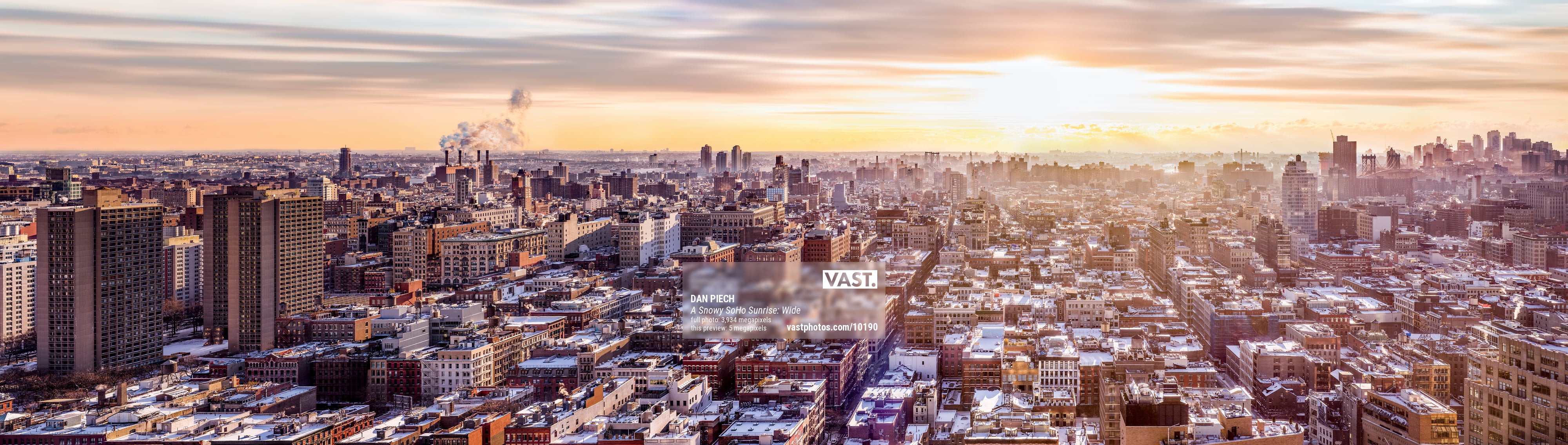 It was early January and a snowstorm was pummeling the city. Seeing an opportunity to capture something truly special, I ascended to the top of the tallest SoHo building in the middle of the night while the falling snow was at its thickest. Then, as predicted, the storm front suddenly cleared and an empty, moonlit sky appeared over top of the snow-capped SoHo rooftops that spread out before me. I captured this VAST photo at that moment and then began to modify my gear in preparation for sunrise.