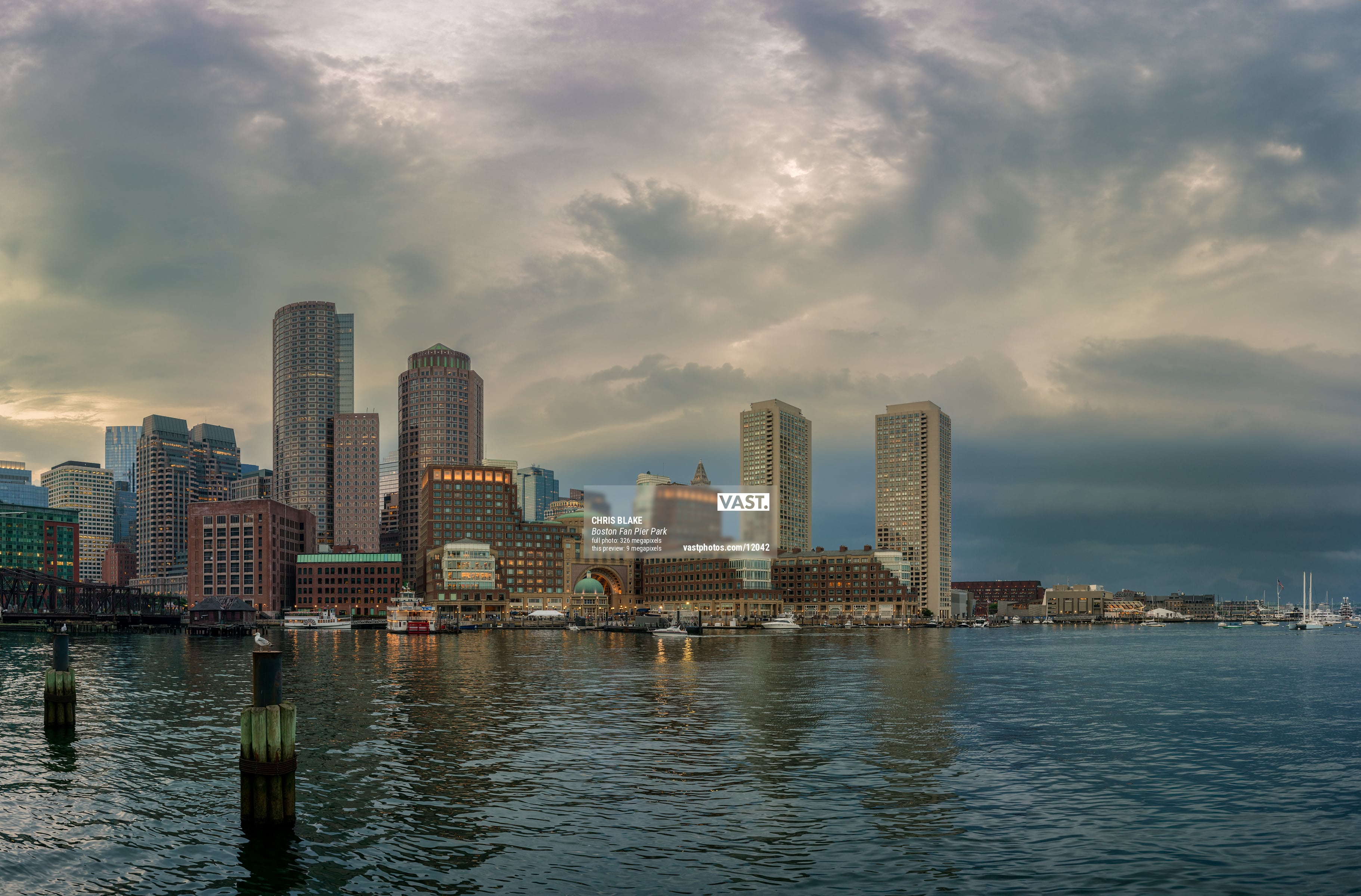 Fan Pier Park offers one of the most iconic views of Boston, where the old wooden piers rising from the bay add character to the skyline. This ultra-high-resolution panorama captures the essence of the city on a dramatic summer evening, just before sunset. The carefully composed image required precise timing and patience, ensuring no passing boats interrupted the tranquil scene.