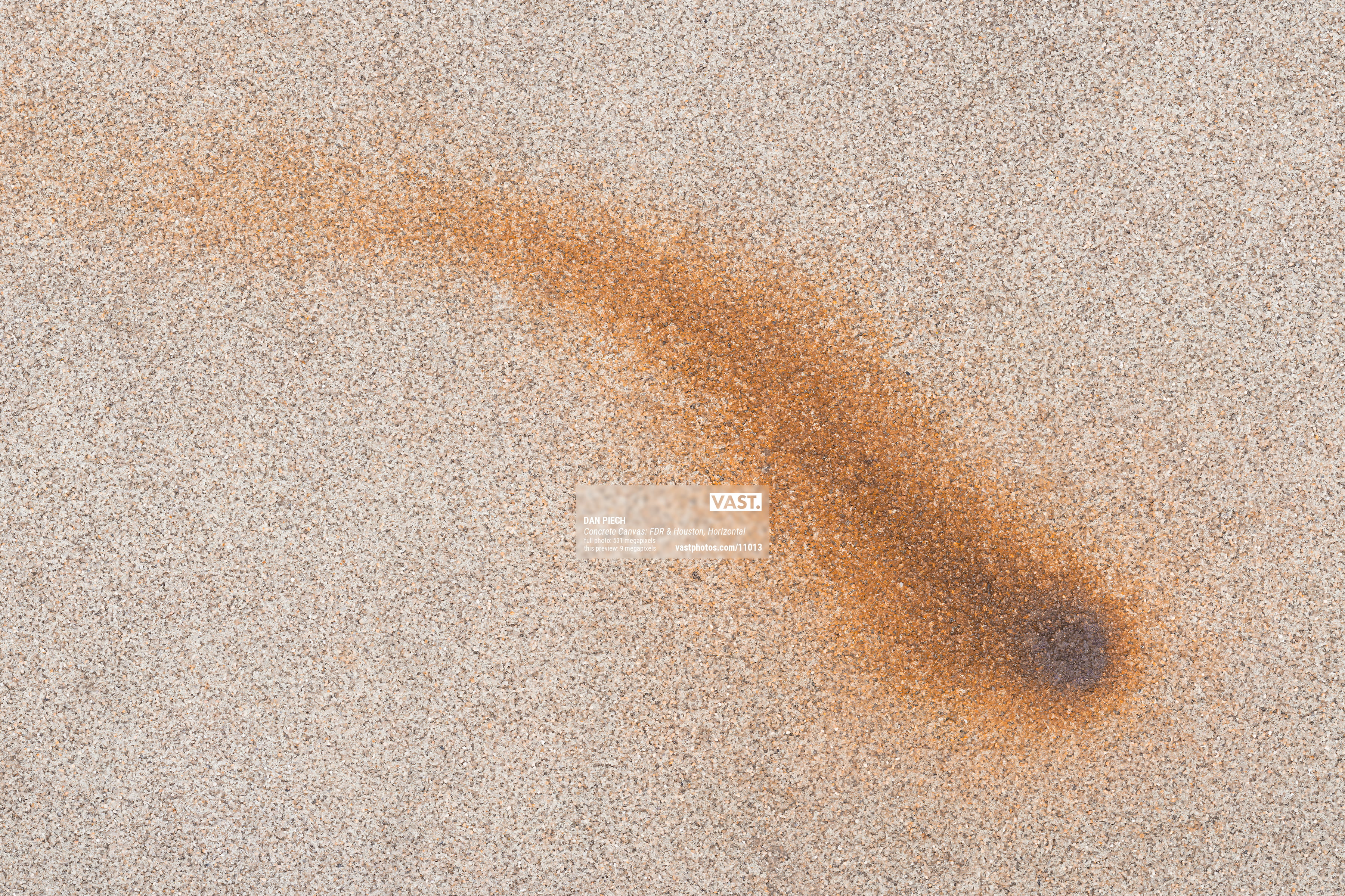 Dan Piech's Concrete Canvas series captures the accidental beauty that serendipitously occurs when the concrete beneath New Yorkers' feet is inadvertently graced by spilled paint, fallen debris, expanding cracks, chemical stains, and other delightful visual elements. An avid runner, Piech has spent over three years traversing every single Manhattan street in search of these overlooked "artworks" that have become part of the fabric of the city.