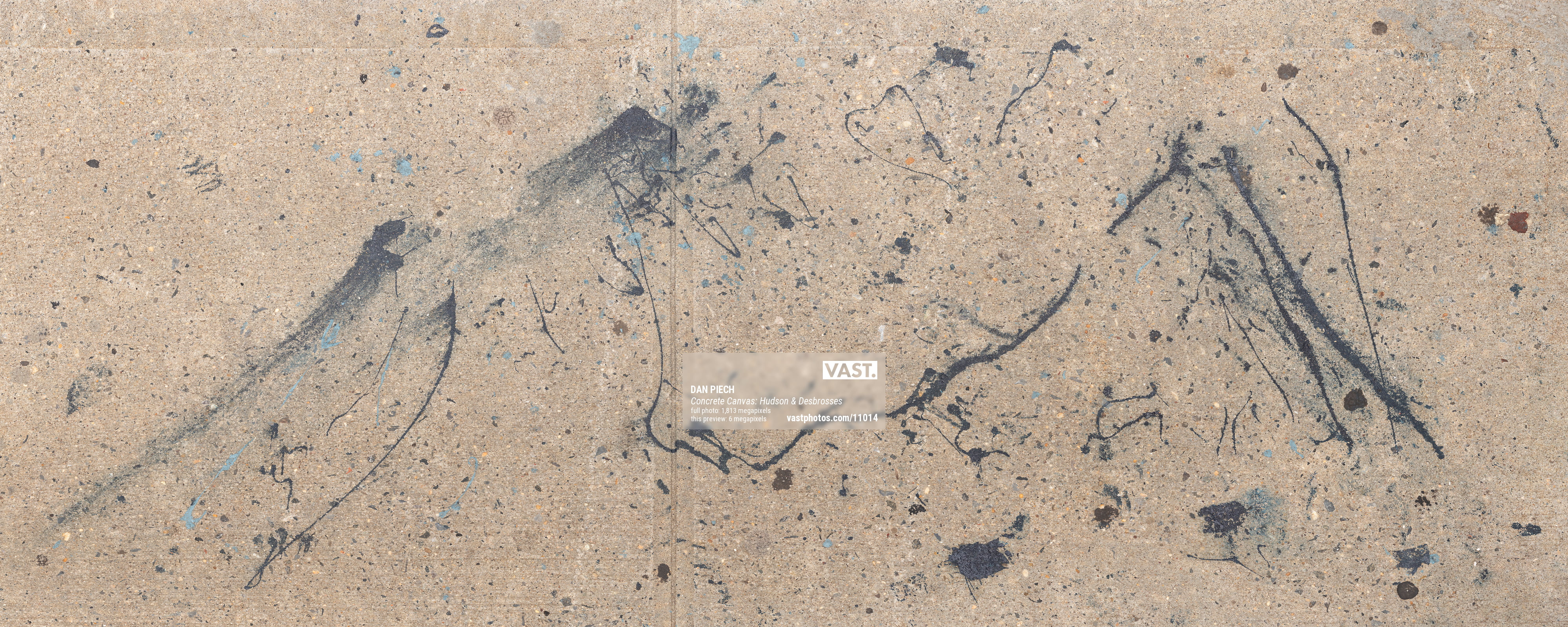 Dan Piech's Concrete Canvas series captures the accidental beauty that serendipitously occurs when the concrete beneath New Yorkers' feet is inadvertently graced by spilled paint, fallen debris, expanding cracks, chemical stains, and other delightful visual elements. An avid runner, Piech has spent over three years traversing every single Manhattan street in search of these overlooked "artworks" that have become part of the fabric of the city.