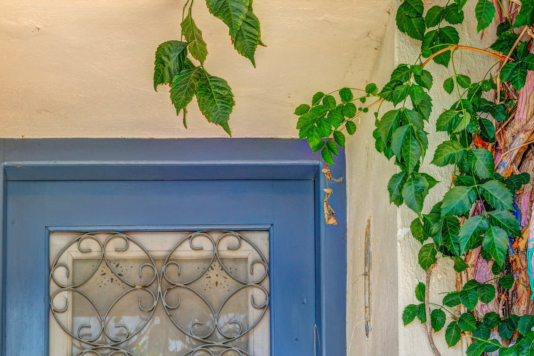 This vibrant collage showcases a collection of charming doors from Alonissos, a picturesque island in the Greek Isles. Each door, framed by lush greenery, flowers, and stone walls, highlights the rustic architecture and colorful aesthetic unique to Greek island homes. The combination of blue, green, and pastel hues evokes the island’s tranquil atmosphere and Mediterranean charm.