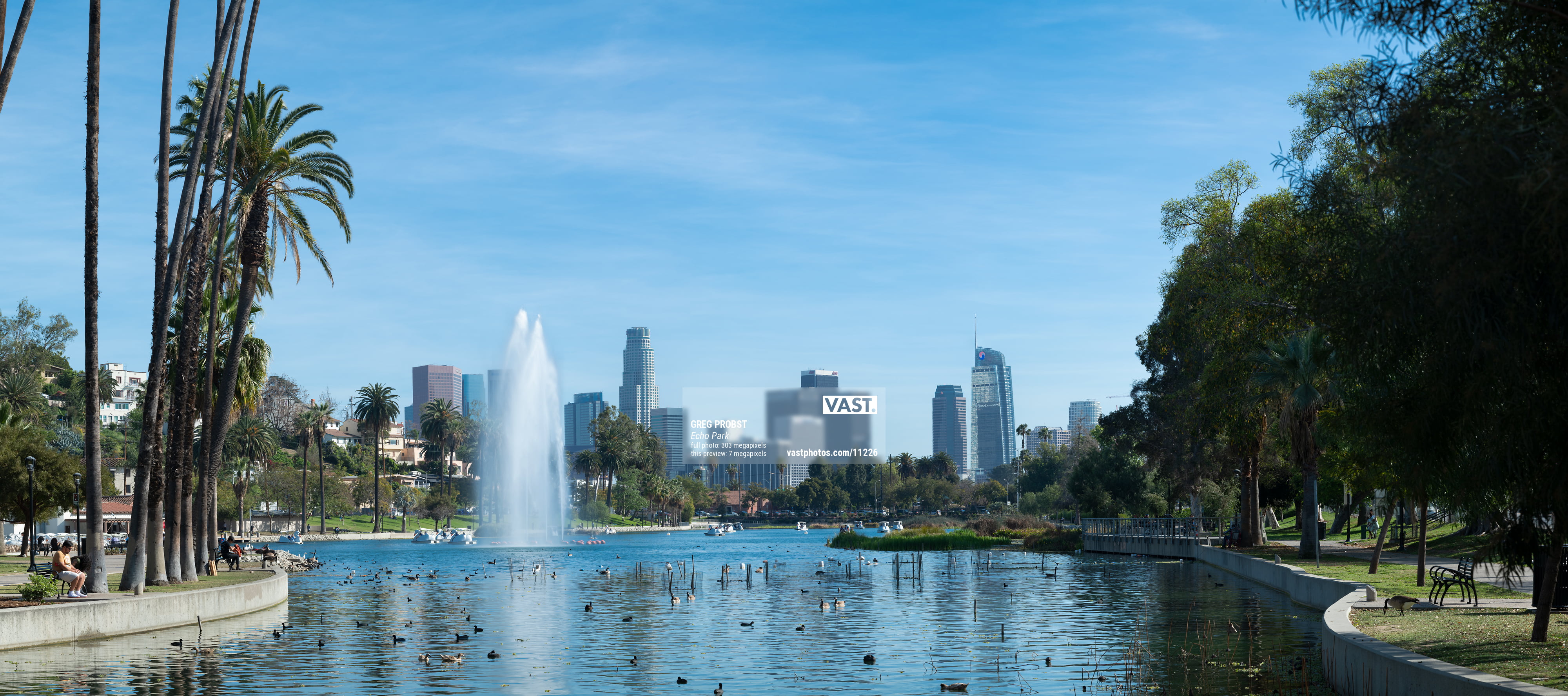 When I'm in a forest or the desert there are fewer moving parts but in Echo Park you can see there are people walking and paddle boats and a lot of birds on the pond. Moving boats and birds cause a wake and those will drive you crazy when you have a couple dozen images to stitch together.