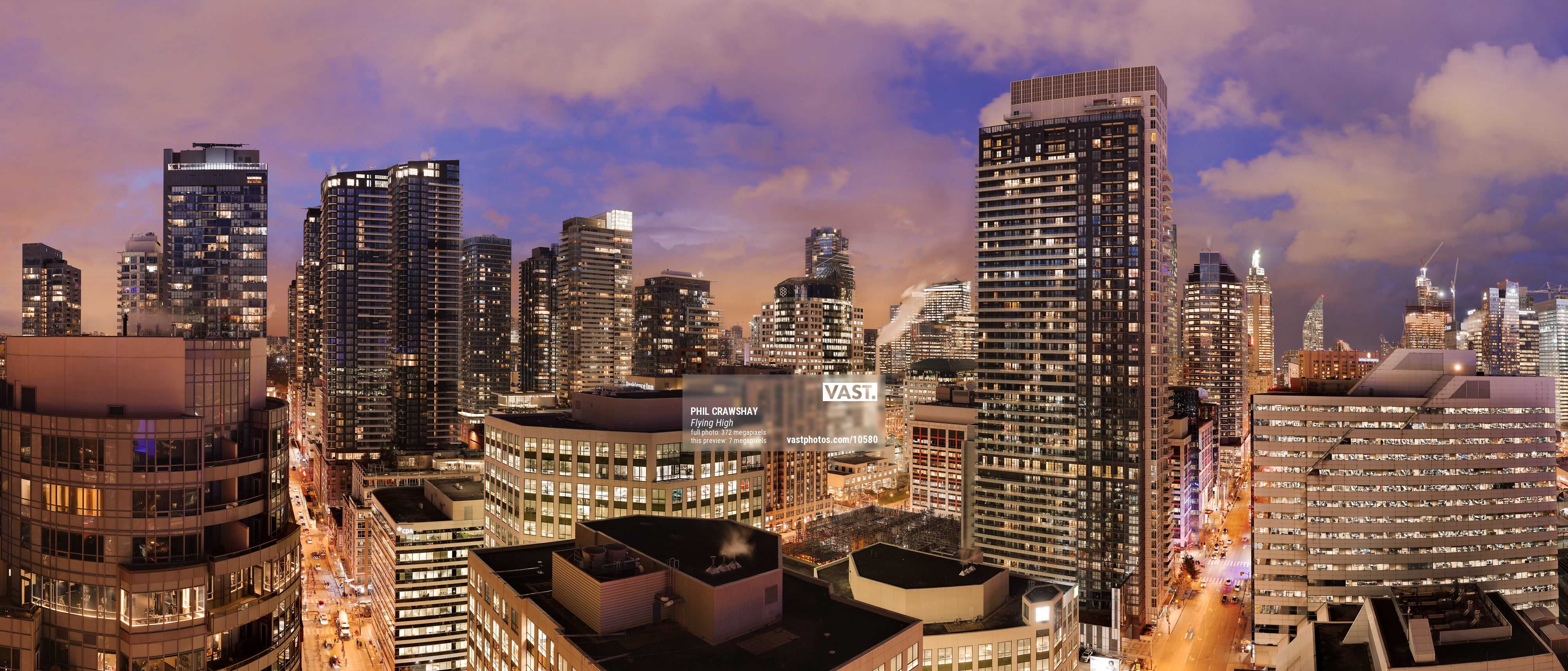 Looking out from the 32nd floor of a Toronto high rise apartment and capturing the intimate details of the offices and dwellings as if like a bird flying through the city.