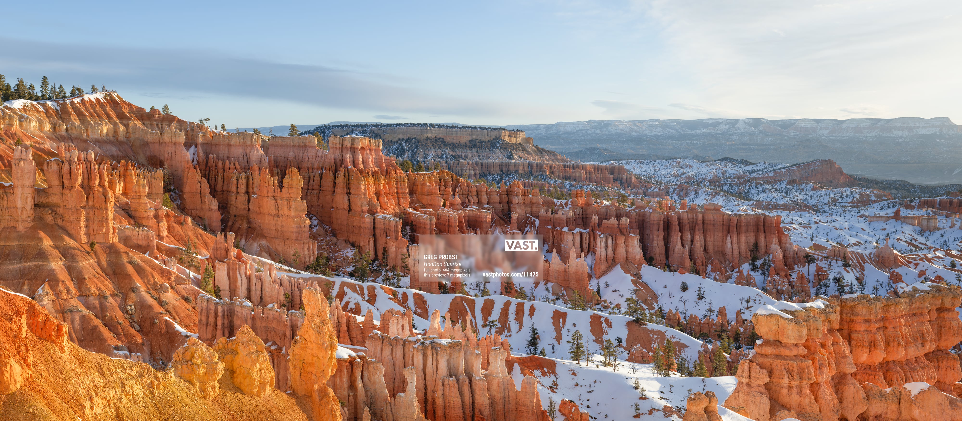 I didn't wear crampons to walk down the trail and I wish I had. The snow had been compressed into ice and it was a bit dicey in a few places. I found a place that I could use the foreground to support the rest of the image without being dominate. It's sharp and you can just reach out and touch those Hoo-doo's. The morning sun causes that nice glow and shapes all the remaining Hoo-doo's which gives this image a nice dimensional feel.