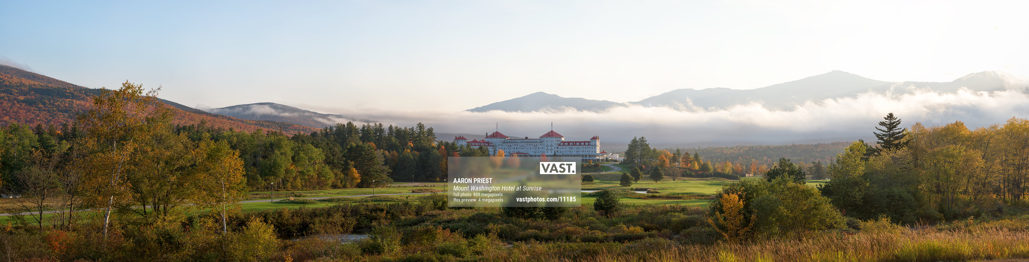Mount Washington Hotel at sunrise in Bretton Woods, New Hampshire, October 9, 2021, 07:44 – 07:57.