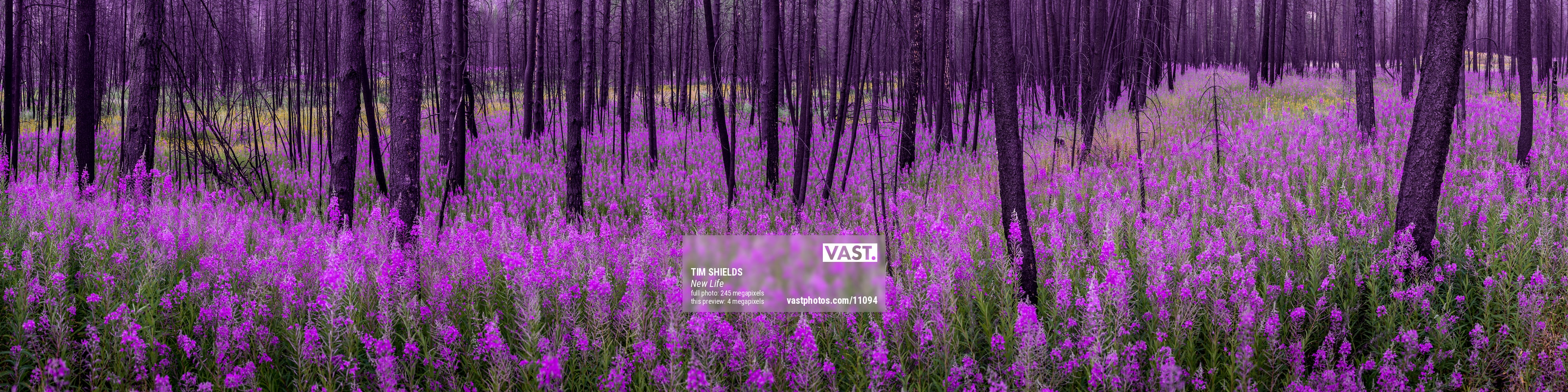 When I was traveling through southern British Columbia near the US border, I came upon a large area that had been completely devastated by a forest fire two years earlier. The trees had all been killed off by the fire but they were still standing. What absolutely amazed me were the wildflowers that had naturally grown up between the trees. The flowers represented new life in an area that had been burned to the ground. The principal of new life jumped out at me. No matter how bad loss seems at the time, there is always something unexpected and good that can emerge from the ashes.