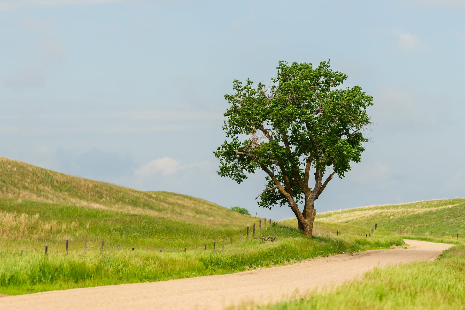 In the wide-open Sandhills of Nebraska, I came across this simple dirt road winding its way through rolling grasslands. At the bend in the road stood a single tree, strong and steady against the horizon. The sky above was painted with soft clouds drifting slowly across the prairie, and the scene carried with it a quiet strength that felt deeply personal. I wanted this photograph to capture that feeling: even in the vast openness of the Sandhills, one tree, one road, one moment can carry profound meaning.