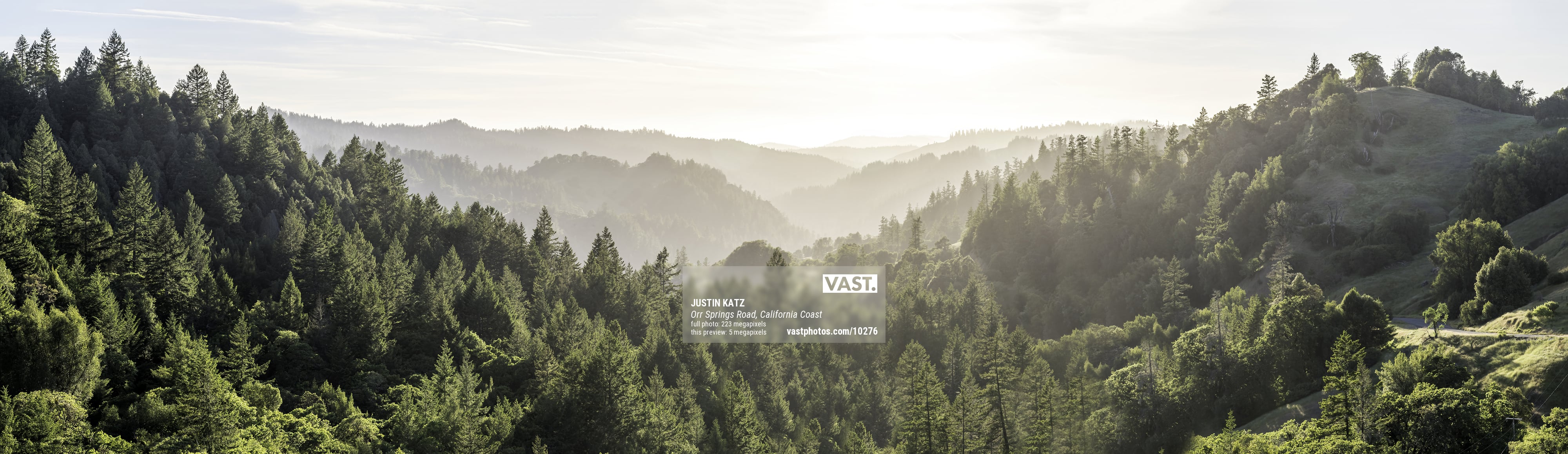 I had picked out this particular spot earlier that day on the drive in, when I descended down into the valley of the redwood groves. I saw that from this vantage point I could face west, and that I could time my return journey to appreciate the view with the sun low enough on the horizon to get the effect I had in mind. I’m very glad that I did time it right too, because when I emerged the light was more beautiful than I could have hoped for.