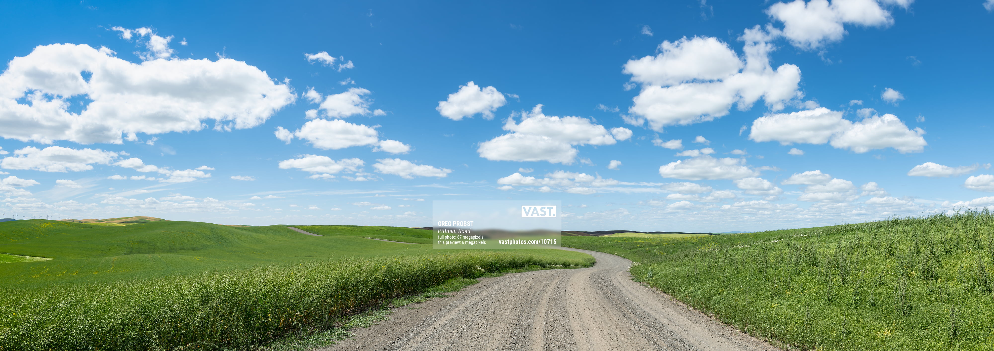 This image was made on one of many dirt roads near Garfield, Washington which is in Whitman County. Whitman claims it produces more wheat than any other county in the USA. That's a lot of wheat, but Whitman County also produces lentils, canola, barley and blue grass seed. The Palouse region of eastern Washington is an area that seems like the rolling hills go on forever. With rolling hills come roads that have those gentle curves that you enjoy "leaning" into as you go around them. I found myself driving these roads back and forth looking for a scene that would show what was in my minds eye and this was one of those view, I think the clouds add a nice touch