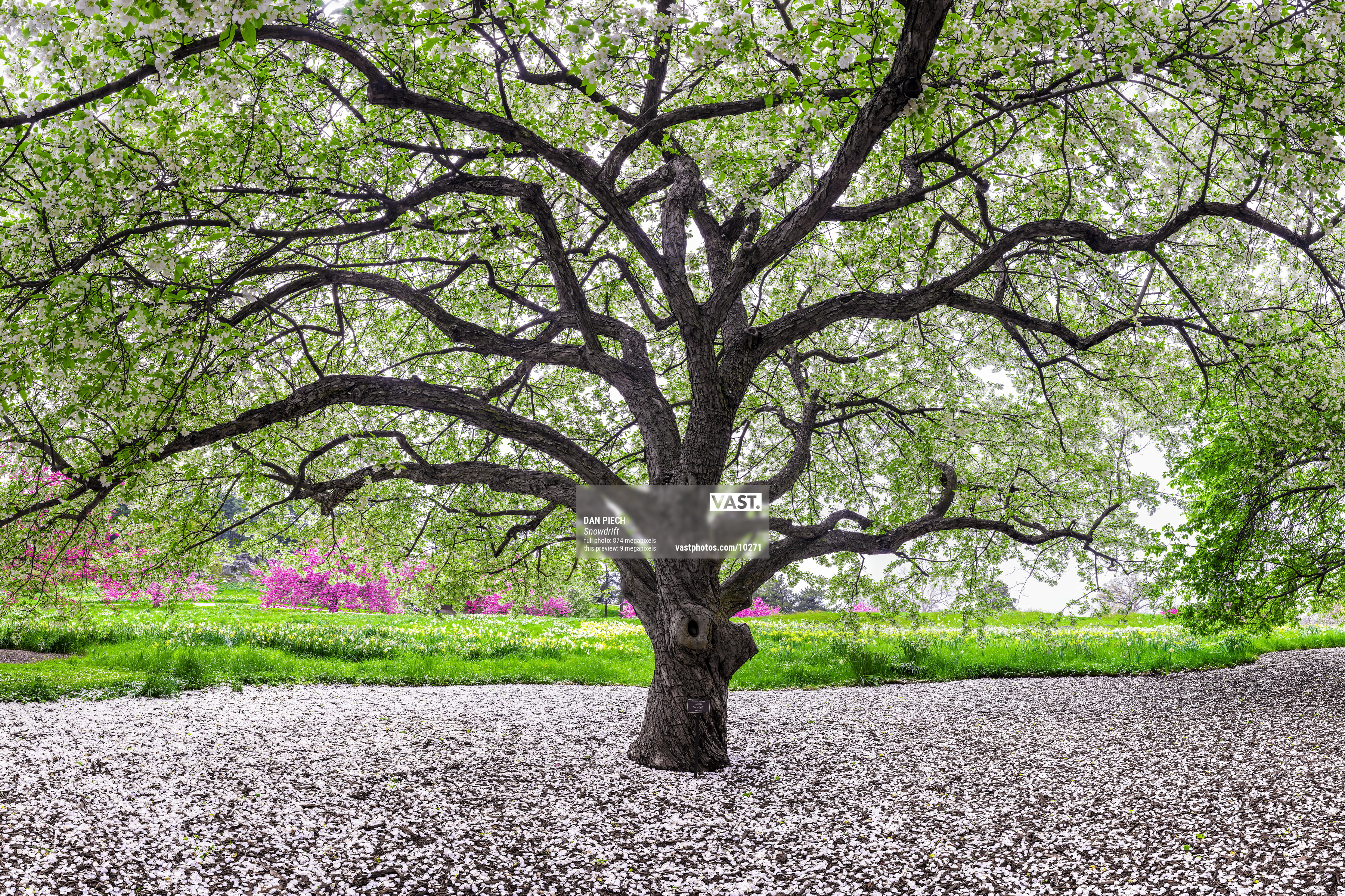 As one of the highest resolution fine art photographs ever created, this VAST photo captures this sublime springtime scene in exquisite detail. This detail enables every last blossom, leaf, and twist of bark to be rendered with exceptional clarity, even on very large format prints. Such a uniquely magical show from such a perfect "Snowdrift" tree like this demands to be captured and displayed with such attention to detail, care, and quality.