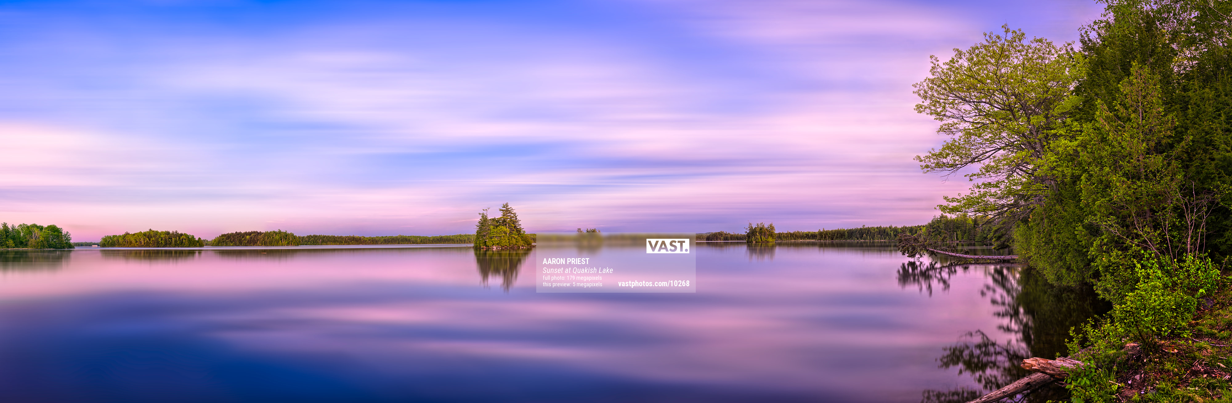 I had been exploring this area, shooting panoramas at a nearby foot bridge earlier in the afternoon, when I struck up a conversation with some hikers that were passing through and vacationed here every summer. I like to engage with locals and learn more about a region I’m photographing to discover secrets they hold. They knew about this peaceful spot at the end of a peninsula that had a wide, sweeping view of the lake where they liked to fish, and told me of a pair of eagles that lived on a nearby island and loved to swoop in and steal the fish!