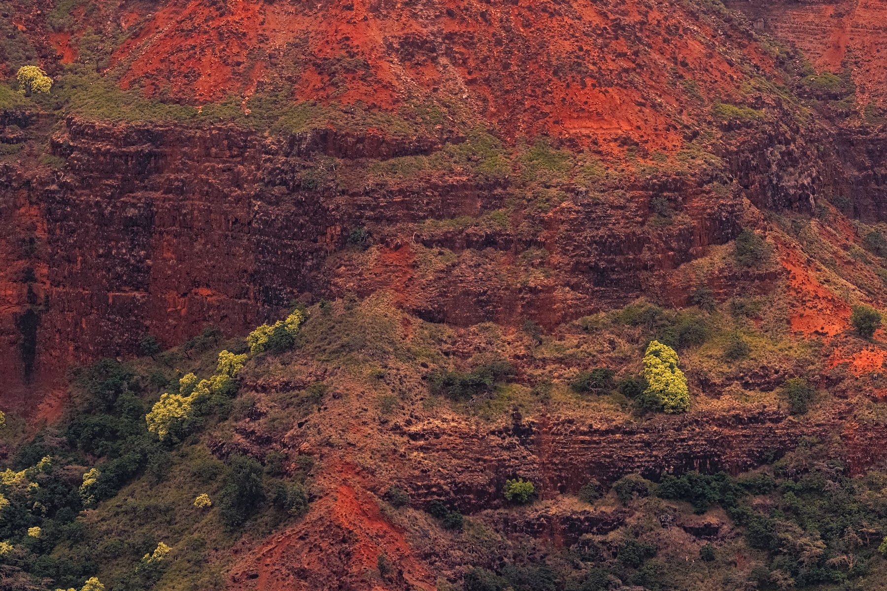 Often called the “Grand Canyon of the Pacific,” Waimea Canyon cuts deeply into the western side of Kauai, revealing layer upon layer of volcanic rock shaped by erosion, rainfall, and the collapse of the ancient shield volcano that formed the island. Its red cliffs, green valleys, and dramatic ridgelines make it one of Hawaii’s most striking inland landscapes.