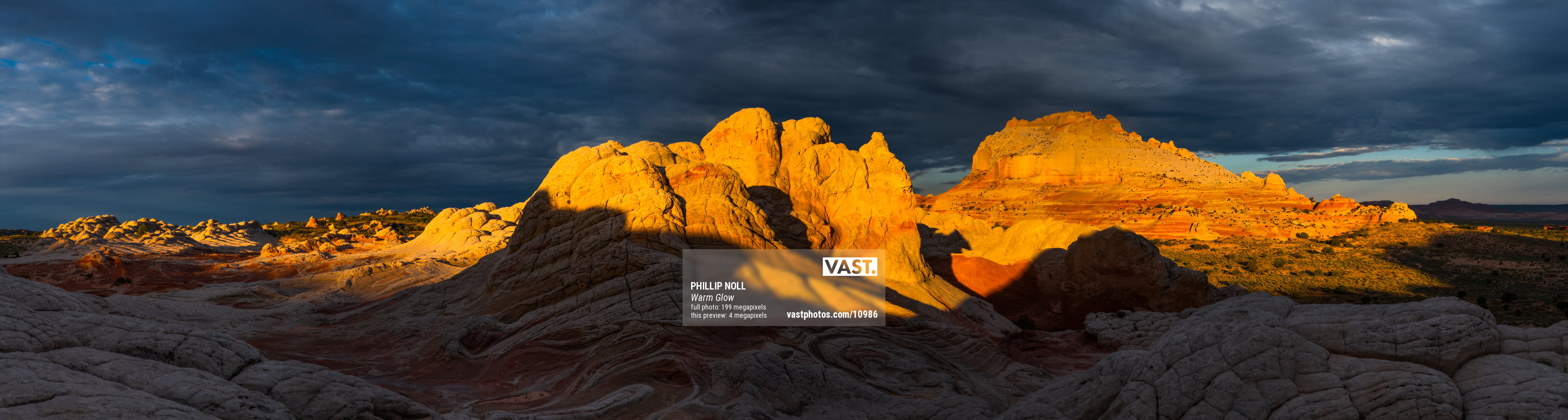White Pocket, Arizona. A place so remote it takes hours of expert driving through deep sand to reach it. An inhospitable place, few trees, almost no shade, no potable water, and yet so stunningly beautiful! The sandstone here is contorted into amazing shapes, peaks, valleys; red, orange, and white. All against a crystalline blue sky. The mystical shapes are the result of soft sediment deformation millions of years ago; now revealed by erosion. Here golden sunrise light illuminates the rock while storm clouds above threaten to drench the desert in much needed rain.